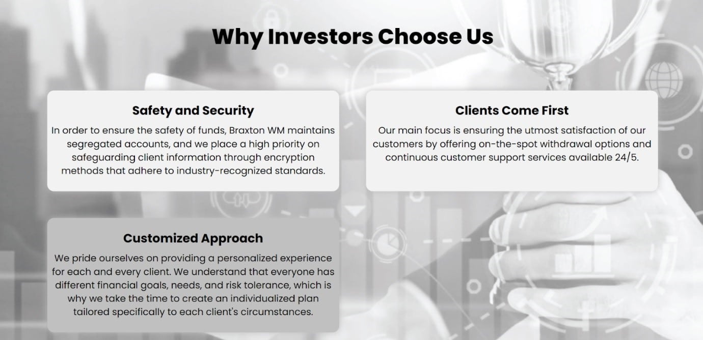 The tailored risk plans cater to the diverse needs of investors, offering high, moderate, and low-risk strategies to suit individual financial goals. Whether traders seek higher returns, balanced growth, or capital preservation, Braxtonwm.com ensures that every investor can choose a risk plan aligned with their unique preferences.