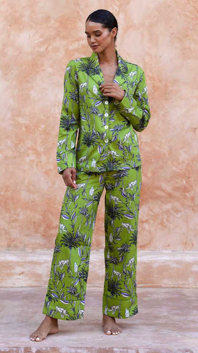 The collection embodies the brand’s signature boldness, offering vibrant prints and chic styles that capture the essence of summer elegance. From effortlessly comfortable pyjama sets to elegant robes, each piece promises a touch of luxury while inviting the wearer to dream of island escapes.